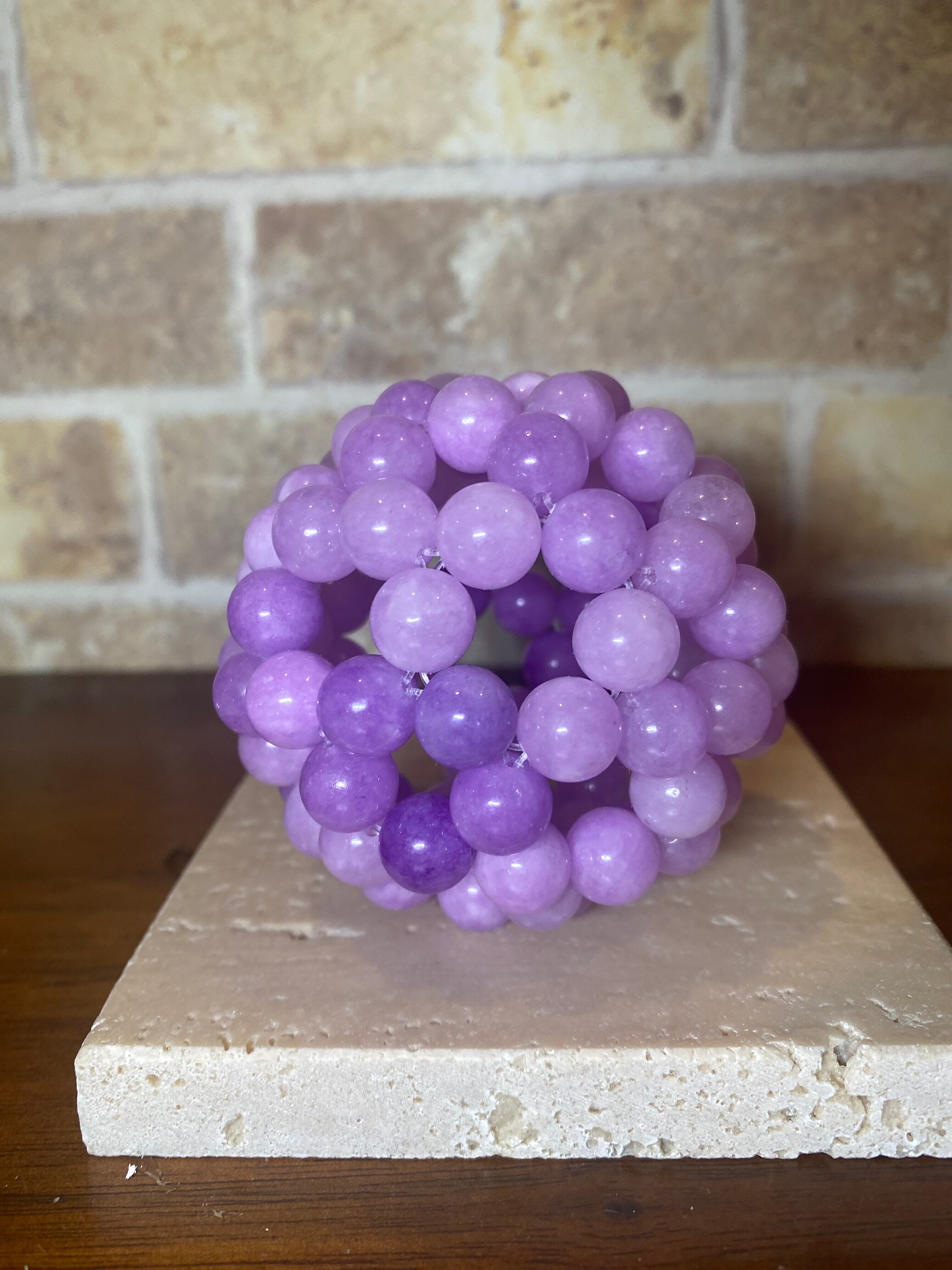 サイズ: 直径約6.6cm、珠はラベンダーアメジスト10mmを90個使用。
