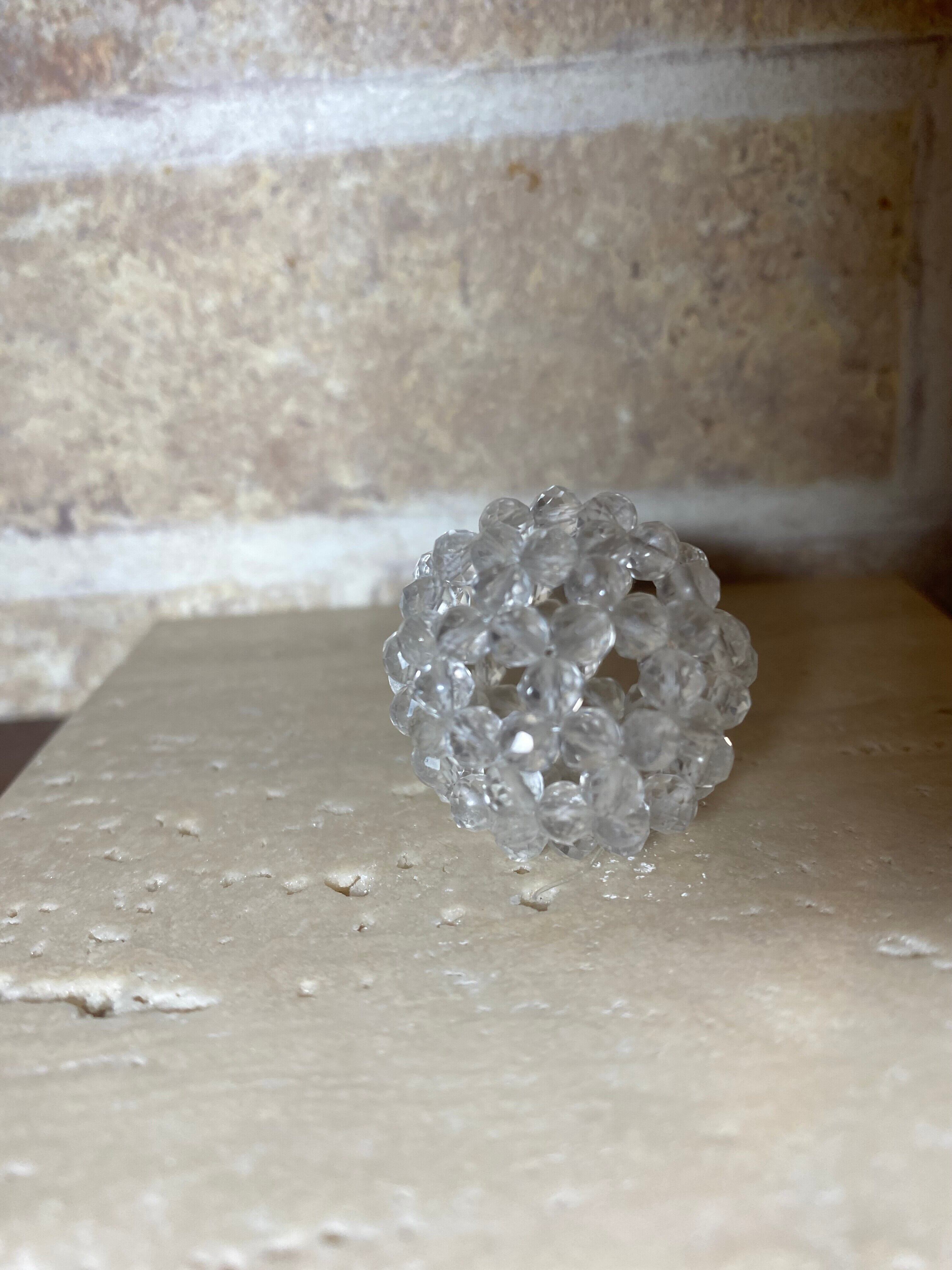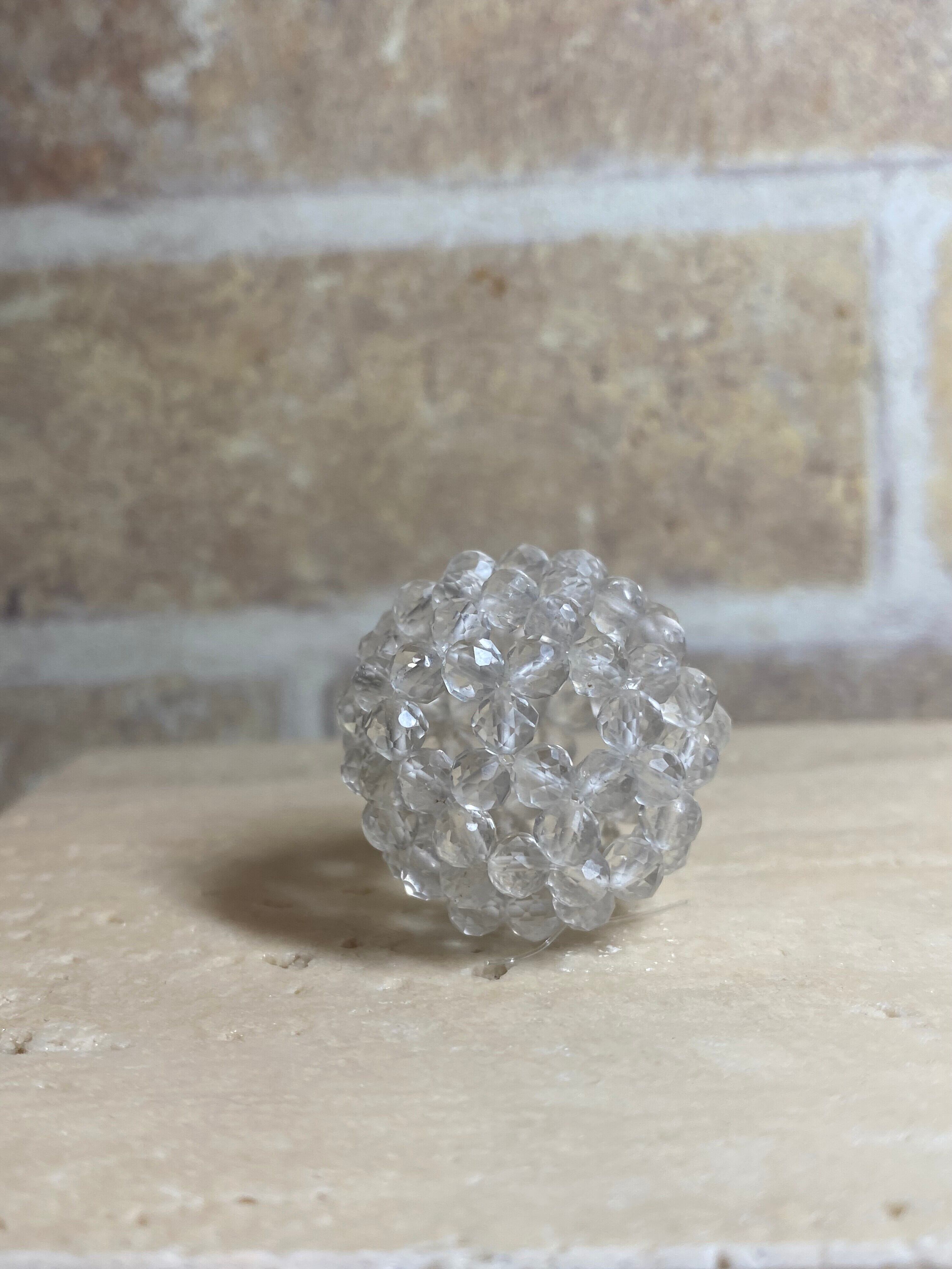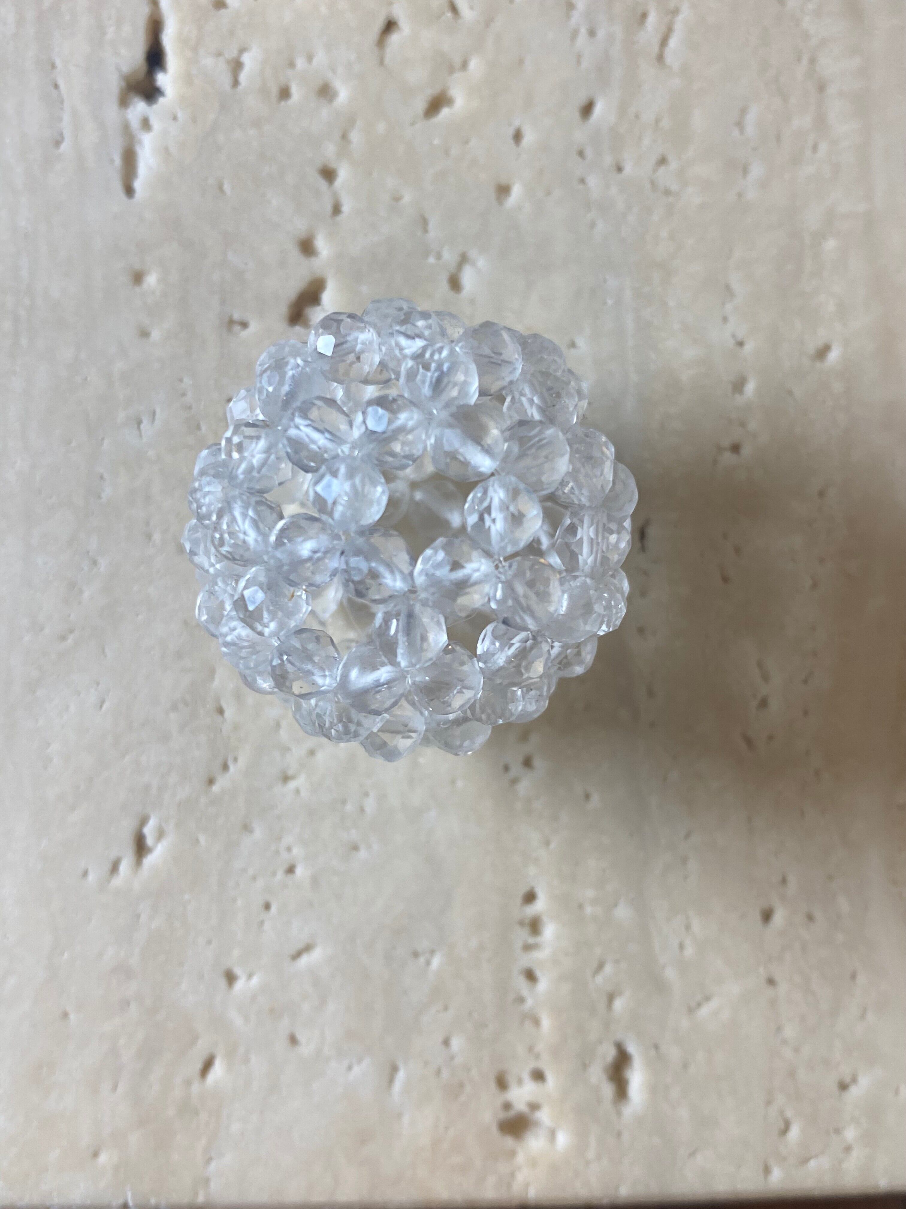 サイズ: 直径約2.6cm、珠は水晶多面体カット4mmを90個使用。